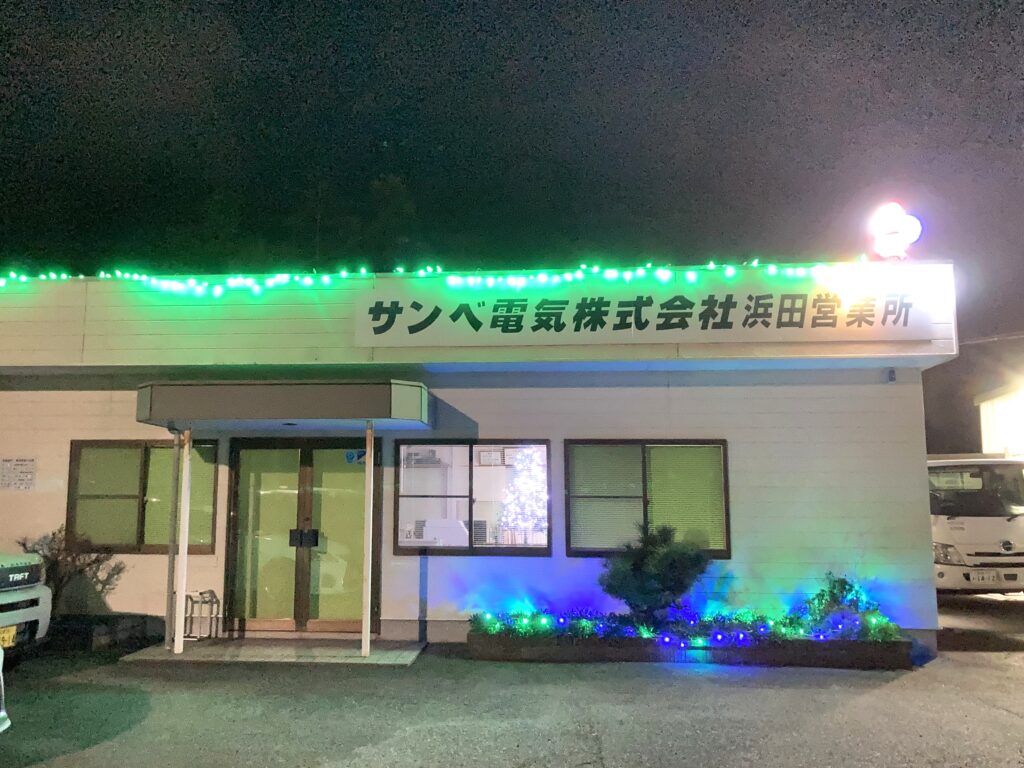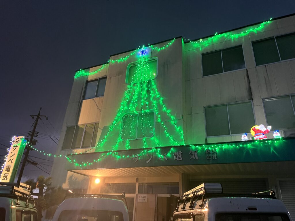 今年も各営業所工務社員の頑張りによって、様々な電飾で素敵に彩られています。
