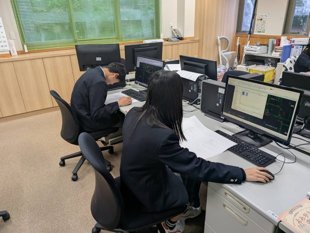 3日間に渡って、弊社での設計・図面の作成、また、施工中の現場見学、高所作業車乗車体験といった様々な業務を体験していただきました。
